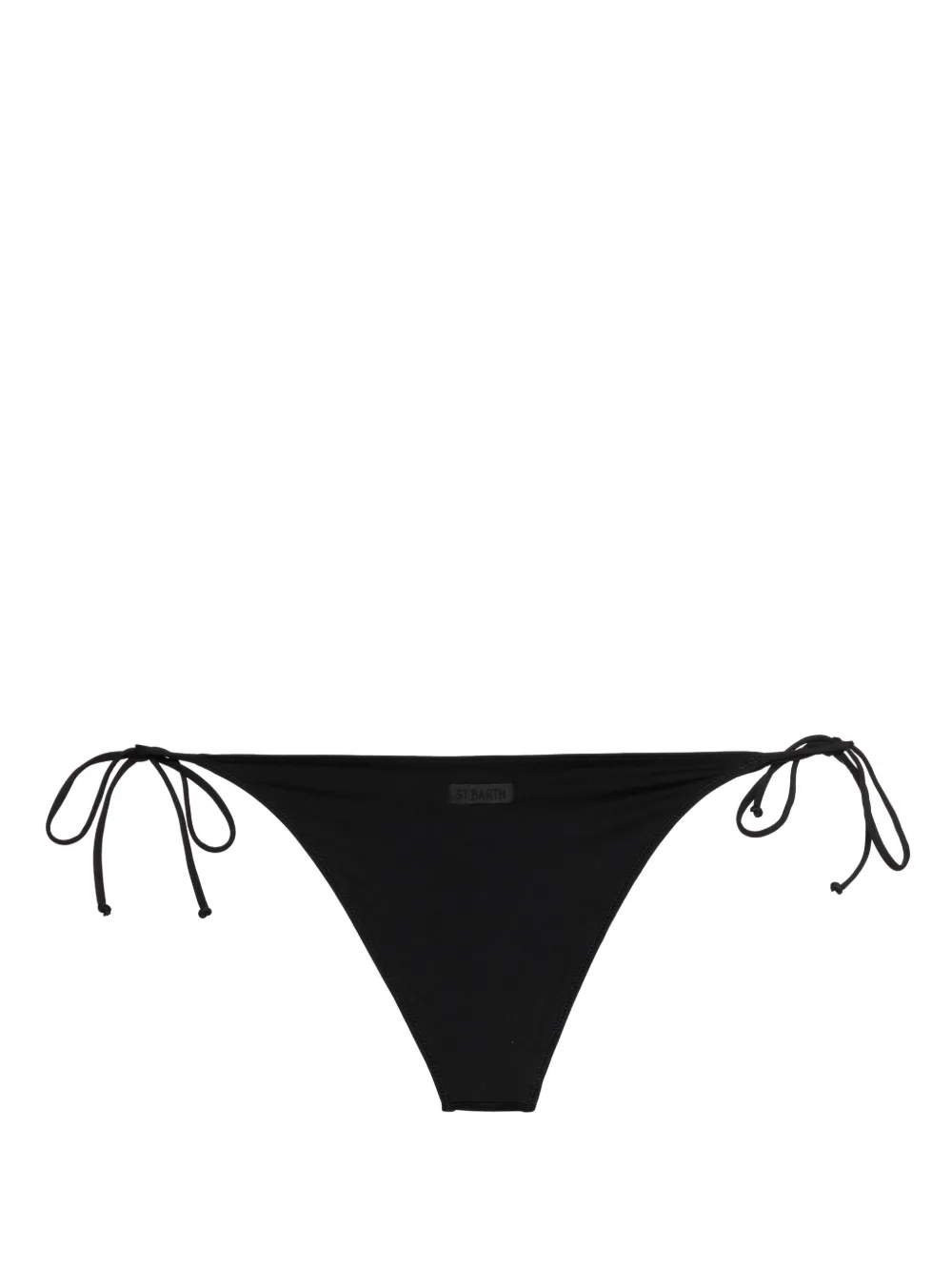 zwart stretch design logopatch aan de achterkant striksluiting aan de zijkant hoog uitgesneden Zwemkleding moet over je eigen kleding worden aangepast.