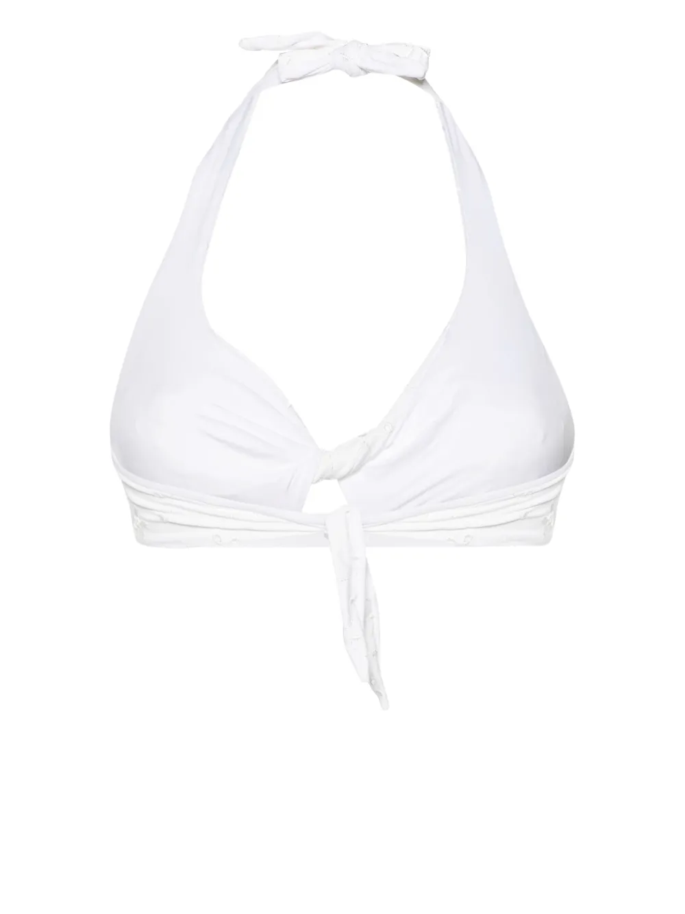 gebroken wit stretch design all-over geborduurde bloemen gedraaide details halternek striksluiting striksluiting aan de achterkant Zwemkleding moet over je eigen kleding worden aangepast.