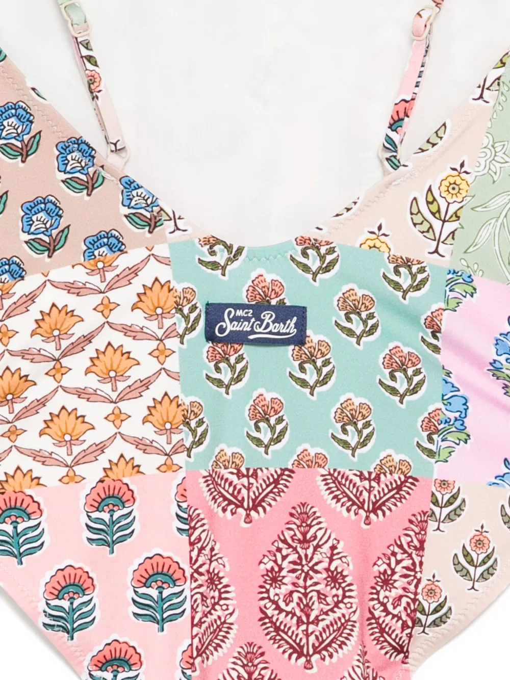 veelkleurig stretch design logopatch aan de achterkant diepe ronde hals Zwemkleding moet over je eigen kleding worden aangepast.