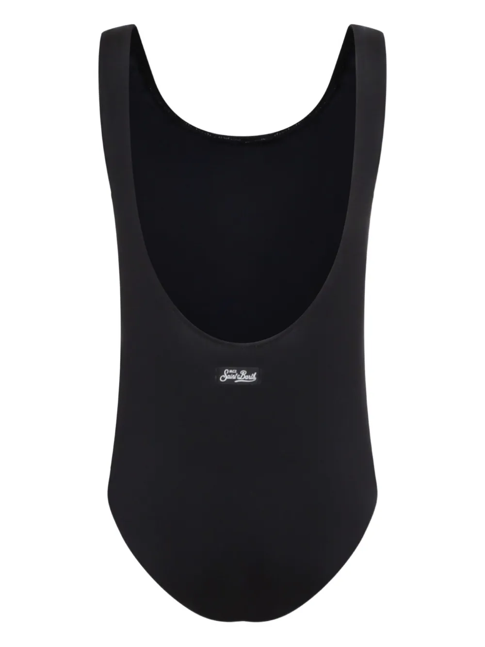 zwart diepe ronde hals laag uitgesneden rug logopatch aan de achterkant Zwemkleding moet over je eigen kleding worden aangepast.