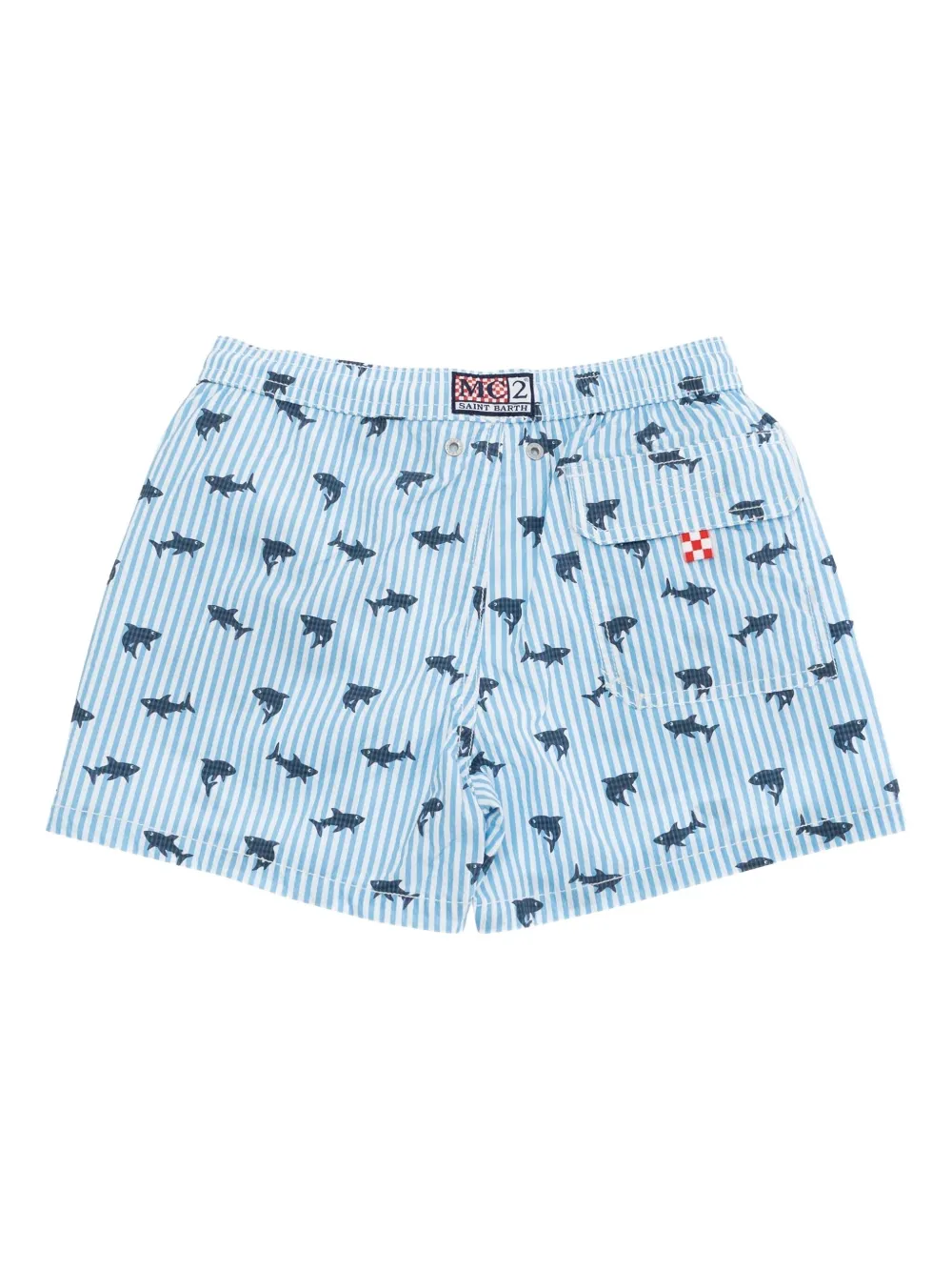 lichtblauw elastische tailleband met trekkoord twee steekzakken aan de zijkant klepzak achter Zwemkleding moet over je eigen kleding worden aangepast.