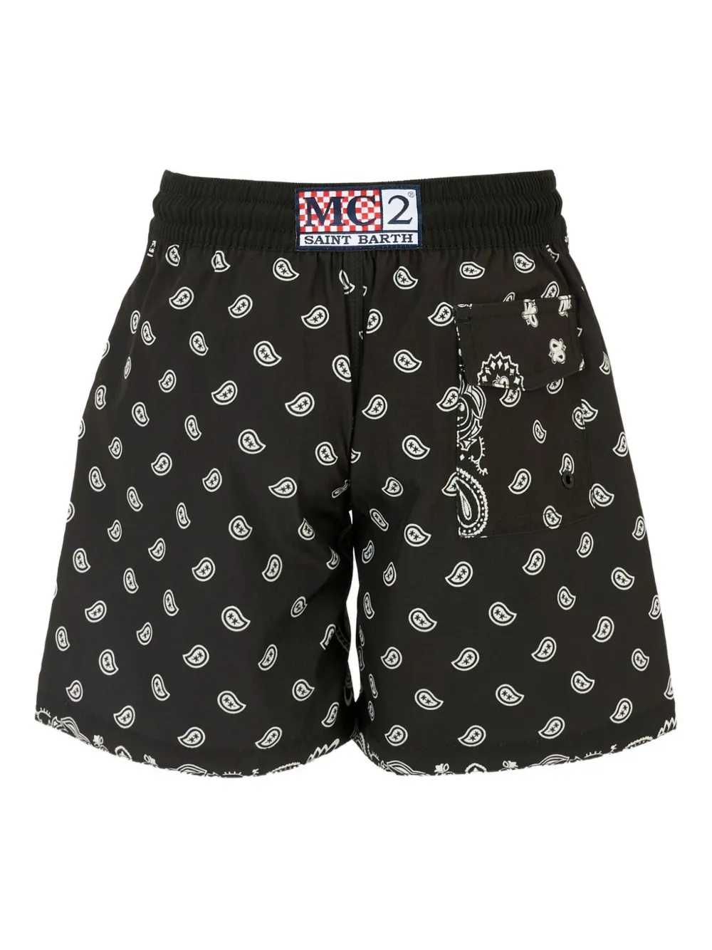 zwart paisley-print trekkoordsluiting elastische tailleband patroon Zwemkleding moet over je eigen kleding worden aangepast.
