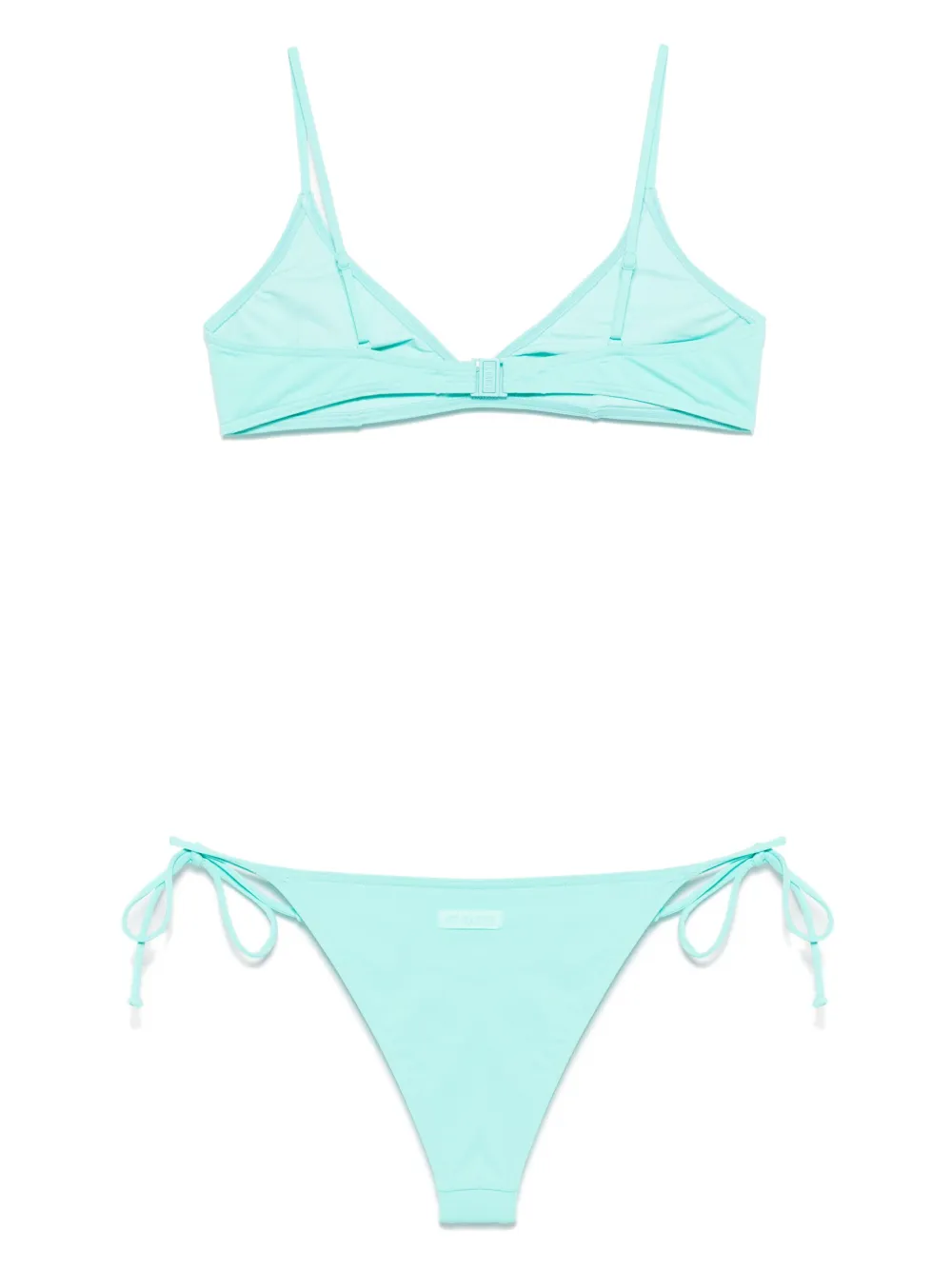 muntgroen sluiting aan de achterkant bikinibroek met striksluiting aan de zijkant triangel cup Zwemkleding moet over je eigen kleding worden aangepast.