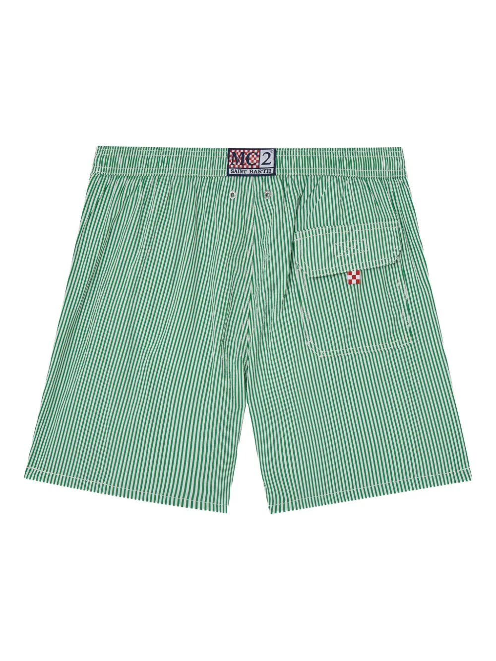 groen gestreept patroon trekkoordsluiting zijzakken achterzak logopatch Zwemkleding moet over je eigen kleding worden aangepast.