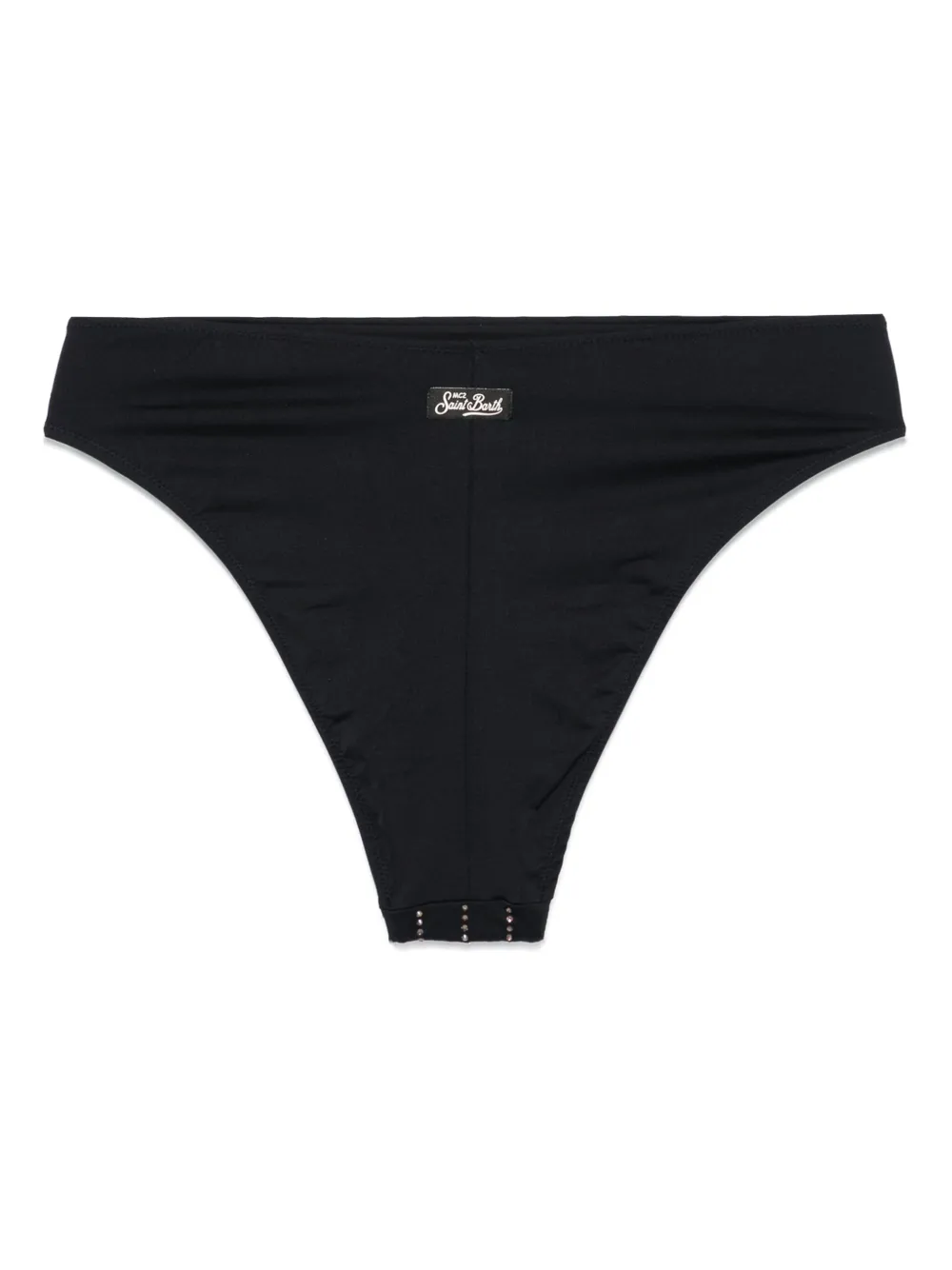 zwart elastische tailleband high waist logopatch aan de achterkant Zwemkleding moet over je eigen kleding worden aangepast.