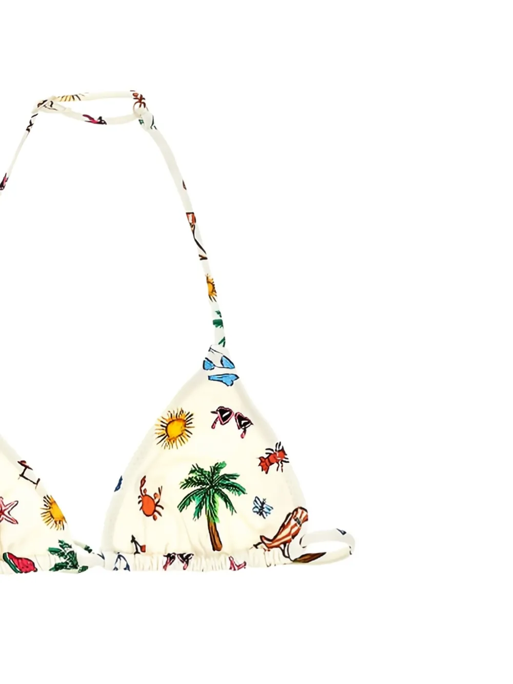 gebroken wit strandprint triangelvormige top striksluiting gestrikte zijkanten Zwemkleding moet over je eigen kleding worden aangepast.