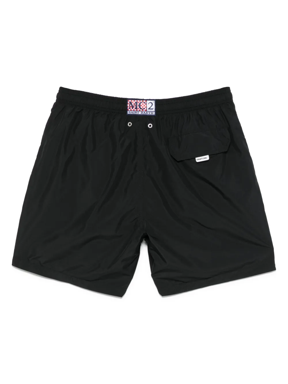 zwart elastische tailleband met trekkoord steekvakken aan de zijkant korte zijsplitten klepzak aan de achterkant Zwemkleding moet over je eigen kleding worden aangepast.