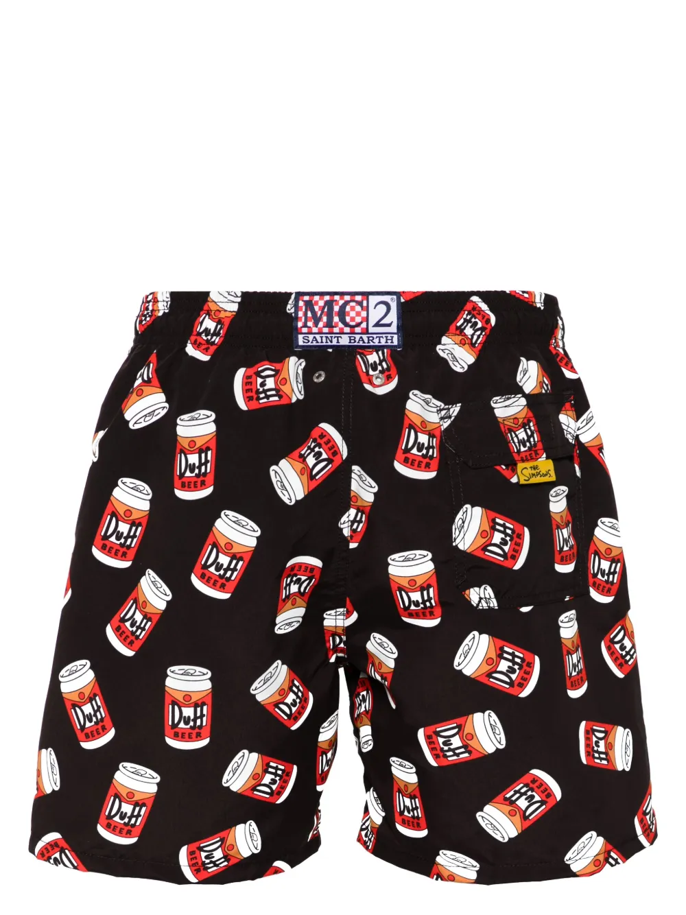 zwart/veelkleurig gerecycled polyester Duff Beer print elastische tailleband twee steekzakken aan de zijkant klepzak aan de achterzijde inwendige mesh slip trekkoordsluiting Zwemkleding moet over je eigen kleding worden aangepast.