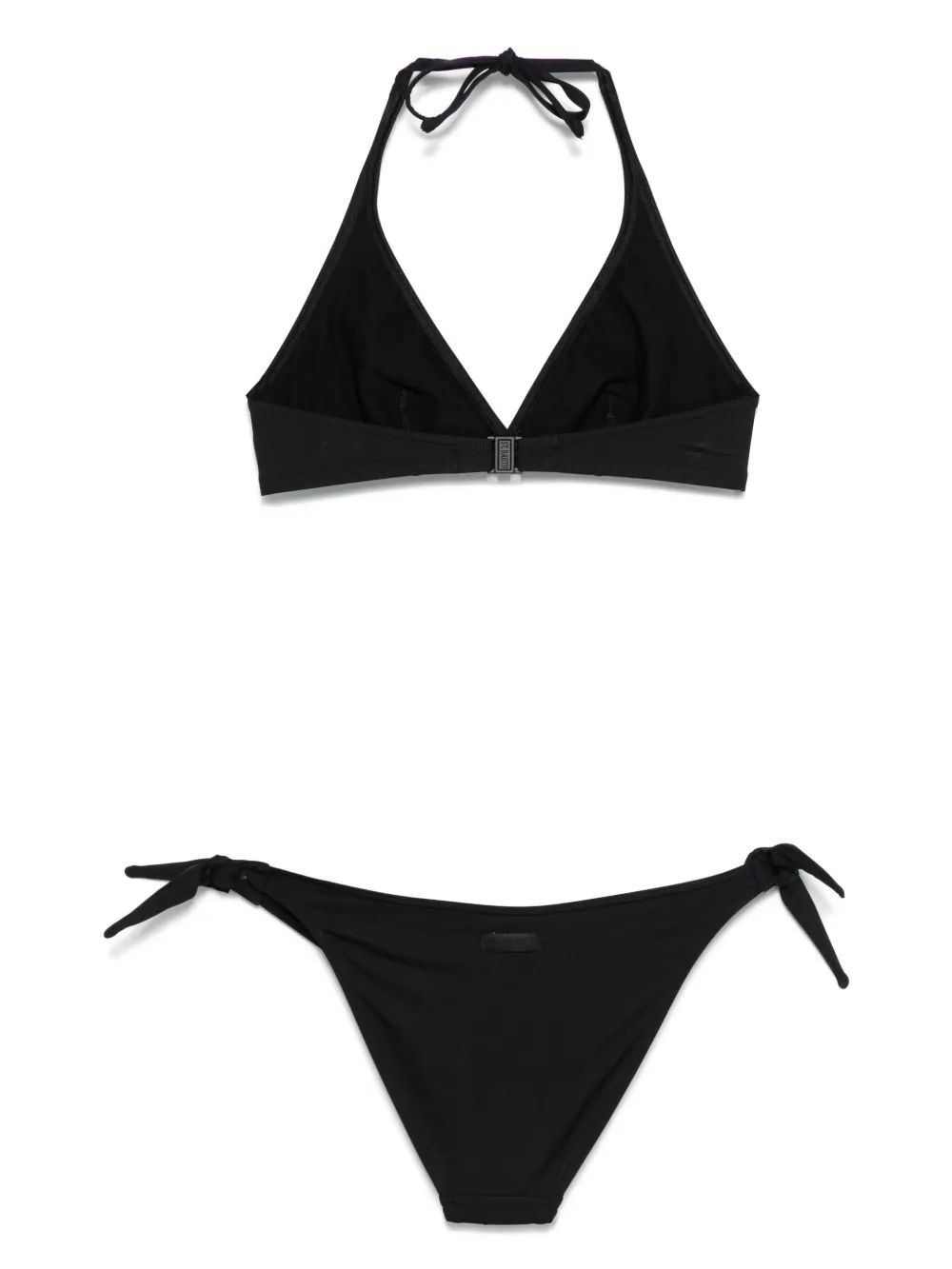 zwart halternek striksluiting striksluiting aan de zijkant driehoekige vorm Zwemkleding moet over je eigen kleding worden aangepast.