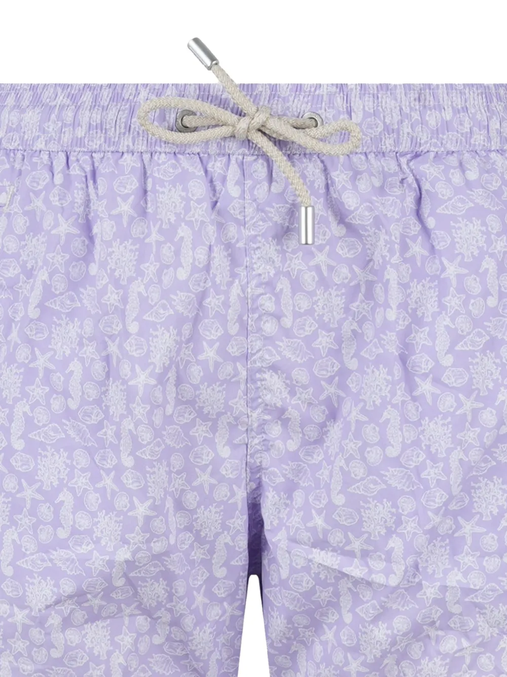 lila elastische tailleband trekkoordsluiting bloemenpatroon zijzakken Zwemkleding moet over je eigen kleding worden aangepast.