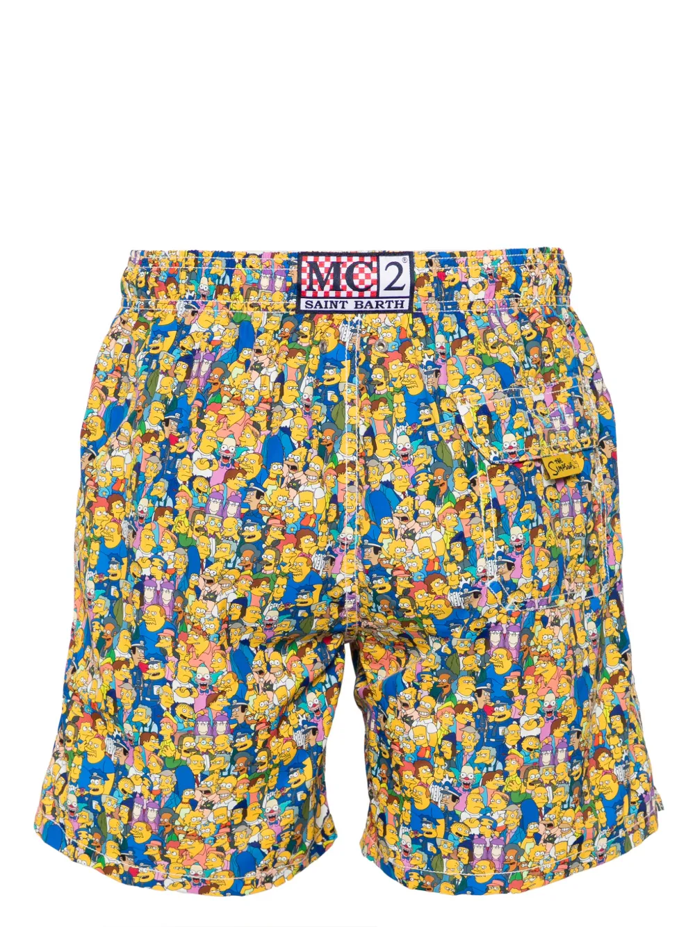 bananengeel/veelkleurig gerecycled polyester Springfield Town print elastische tailleband twee steekzakken aan de zijkant klepzak aan de achterzijde inwendige mesh slip trekkoordsluiting Zwemkleding moet over je eigen kleding worden aangepast.