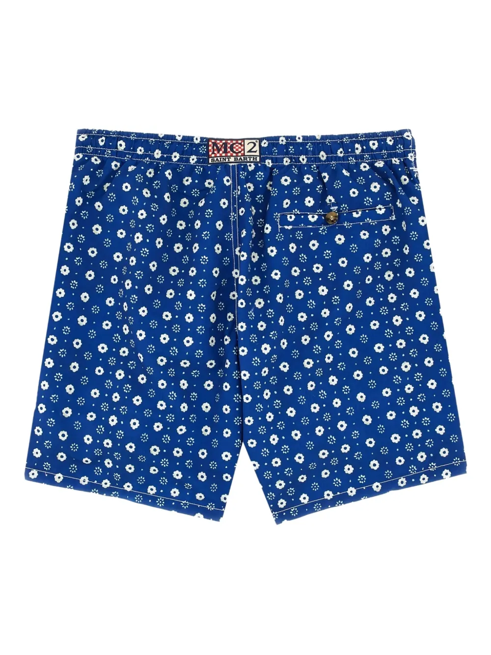 blauw all-over stippenprint elastische tailleband met trekkoord achterzak contrasterende details Zwemkleding moet over je eigen kleding worden aangepast.