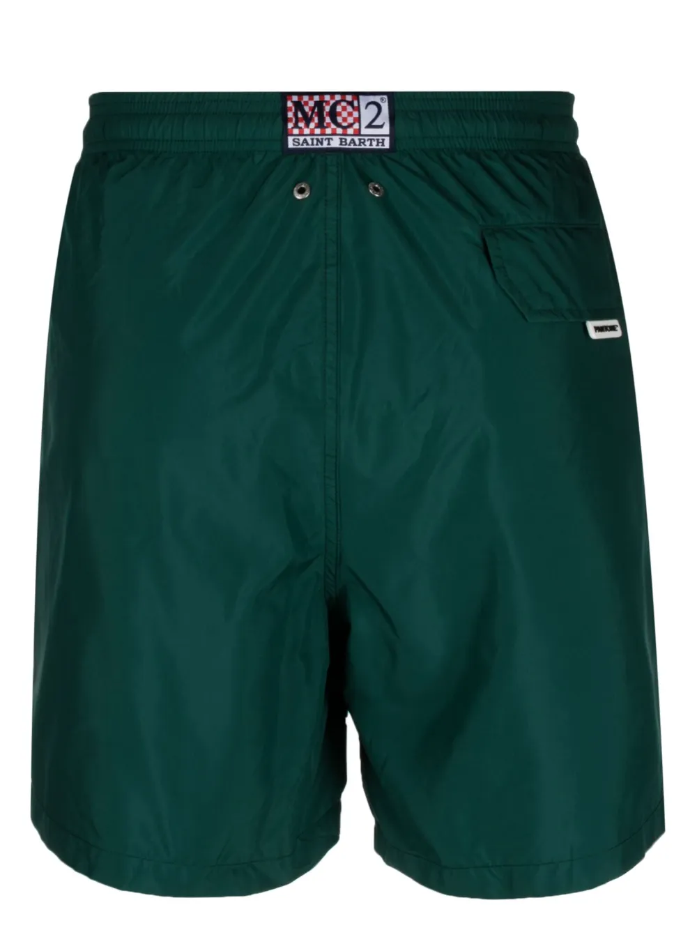 Groenblauw, logopatch aan de achterkant, elastische tailleband met trekkoord, twee ingenaaide zijzakken en achterzak met klep. Zwemkleding moet over je eigen kleding worden aangepast..