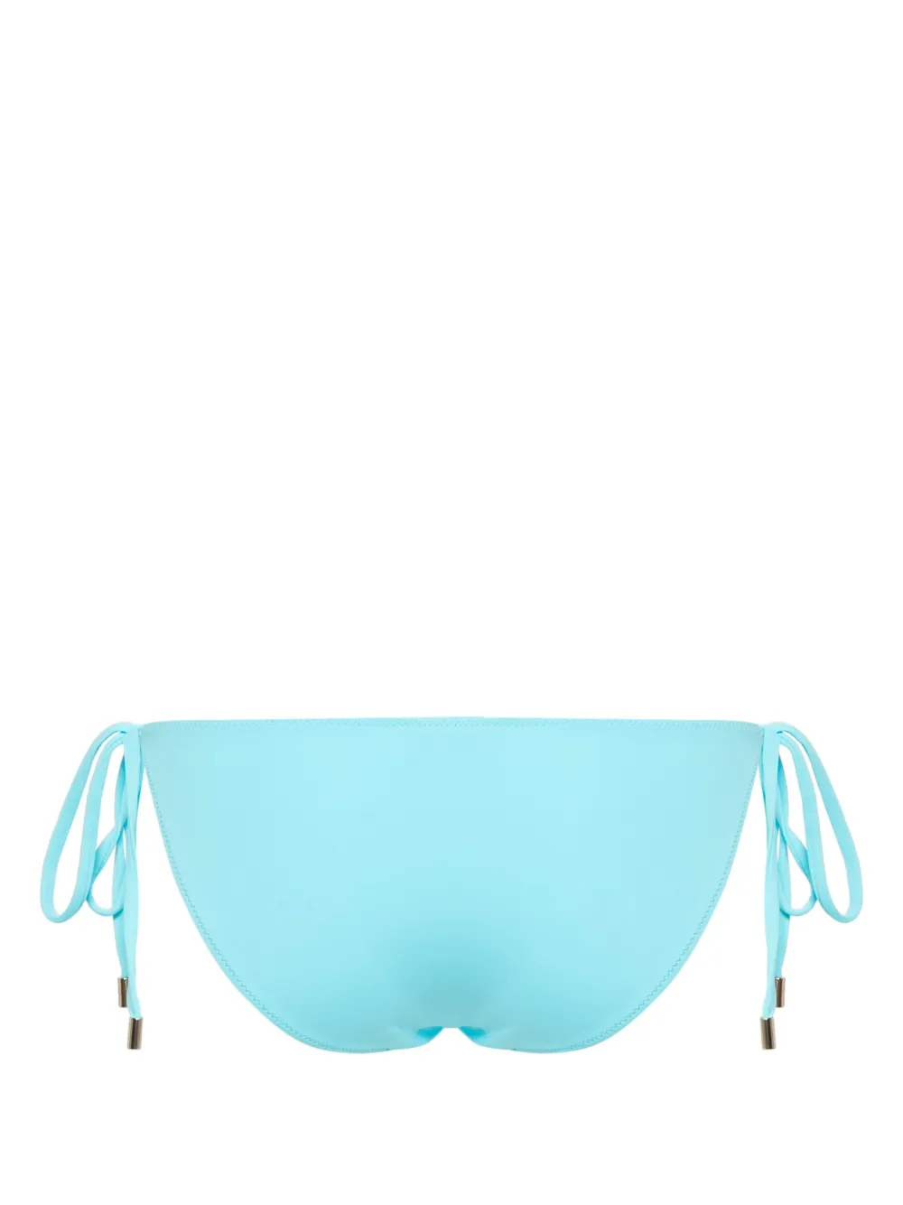 aqua blauw stretch design gegraveerd logo bikinibroek met striksluiting aan de zijkant elastische tailleband Zwemkleding moet over je eigen kleding worden aangepast. ^