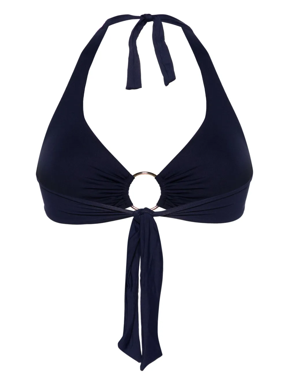 marineblauw stretch design ringdetail halternek striksluiting triangel cup striksluiting aan de achterkant Zwemkleding moet over je eigen kleding worden aangepast.