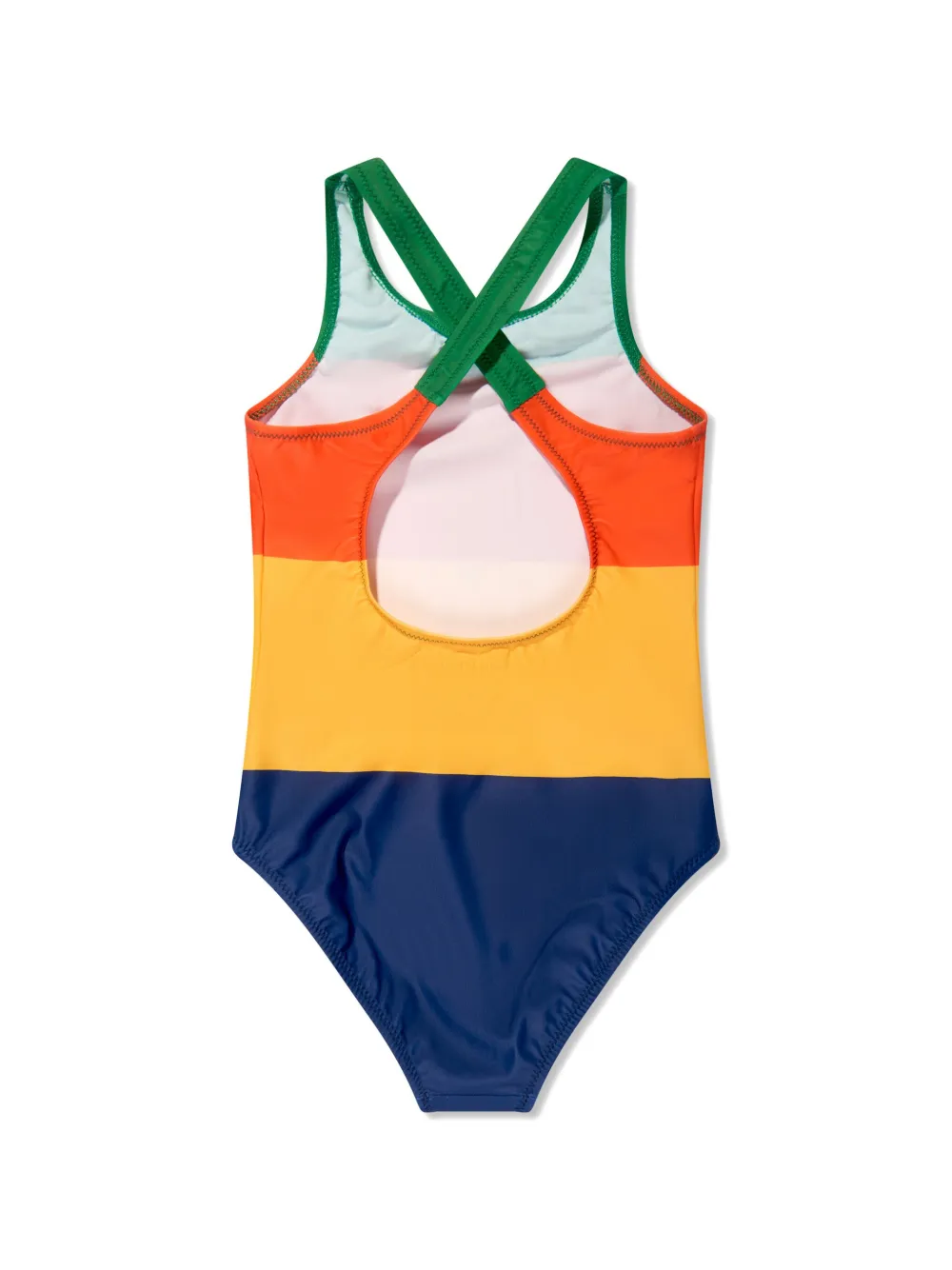 smaragd groen/veelkleurig ECONYL® stretch design horizontale strepen ronde hals gekruiste bandjes aan de achterkant mouwloos Zwemkleding moet over je eigen kleding worden aangepast.