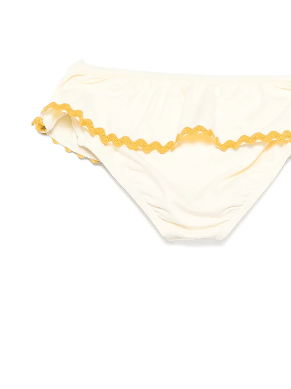 geel en gebroken wit ruches verstelbare bandjes gewelfde afwerking bikinitop slip aan de onderkant Zwemkleding moet over je eigen kleding worden aangepast.