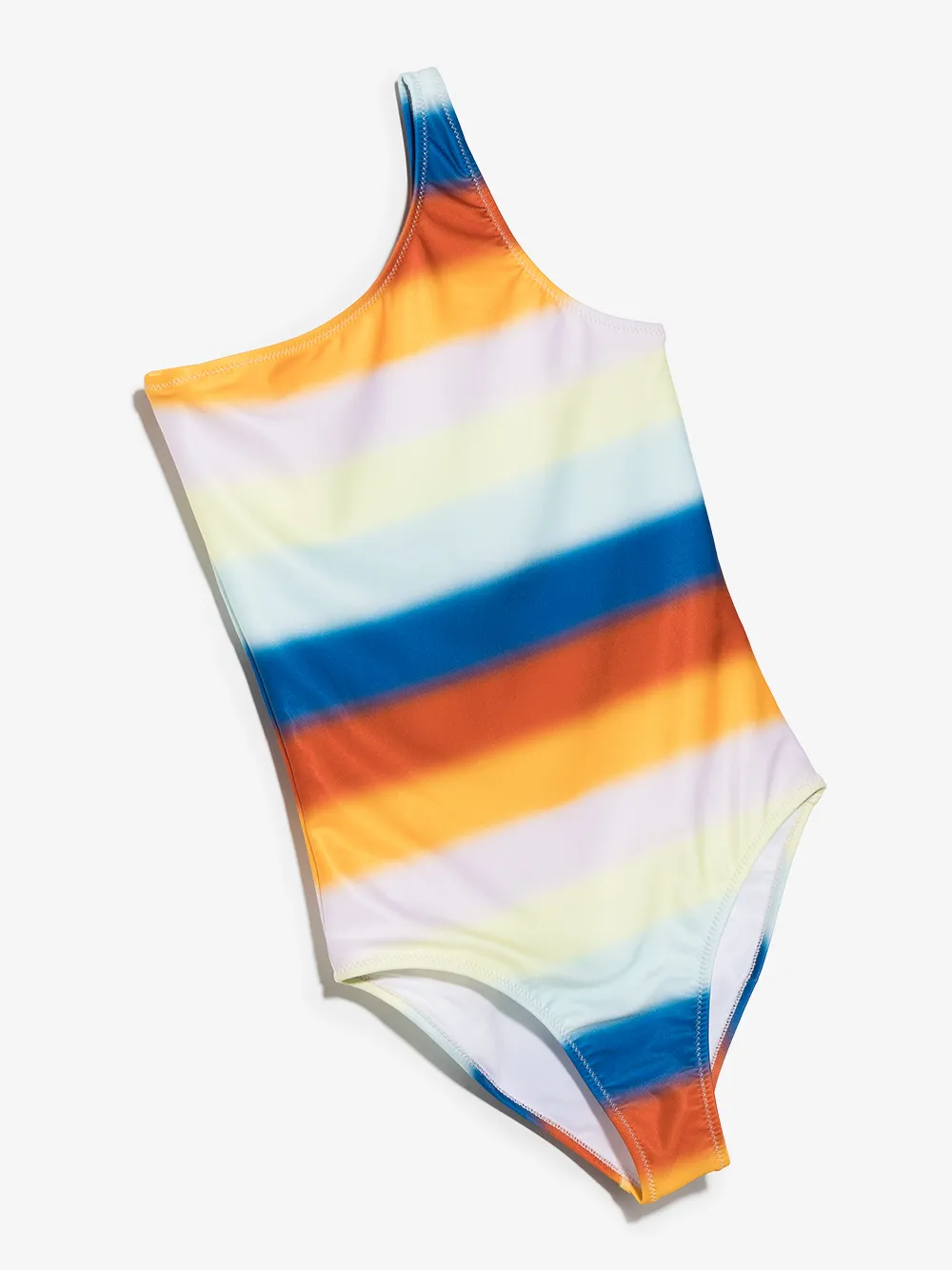 Veelkleurig, print met horizontale strepen, asymmetrisch en stretch design. Zwemkleding moet over je eigen kleding worden aangepast..