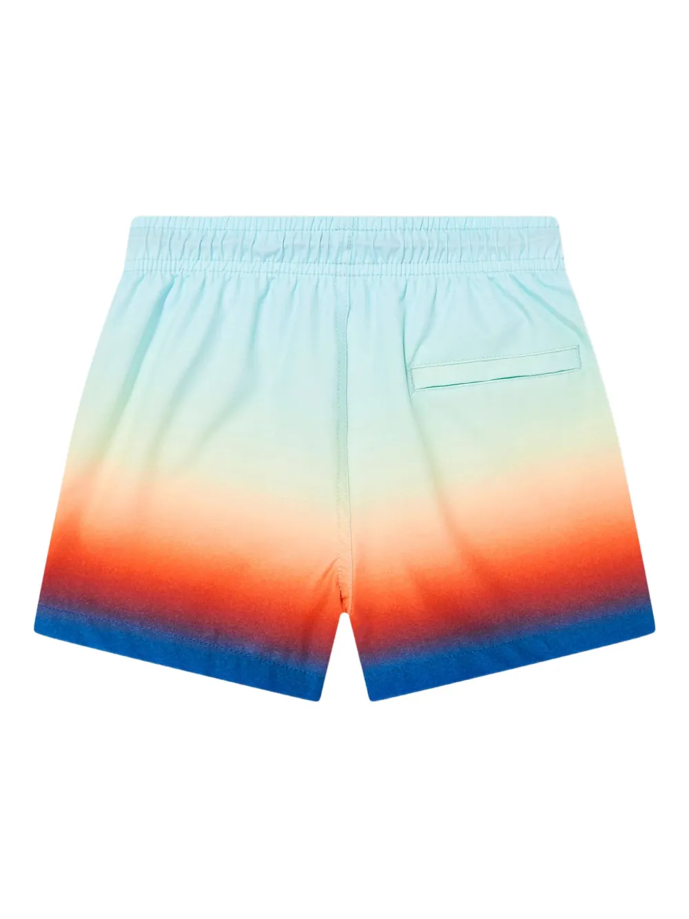 lichtblauw elastische tailleband met trekkoord twee steekzakken aan de zijkant paspelzak aan de achterkant Zwemkleding moet over je eigen kleding worden aangepast.