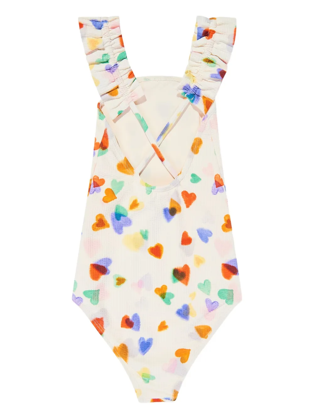 wit vierkante hals gekruiste bandjes aan de achterkant hartenprint Zwemkleding moet over je eigen kleding worden aangepast.
