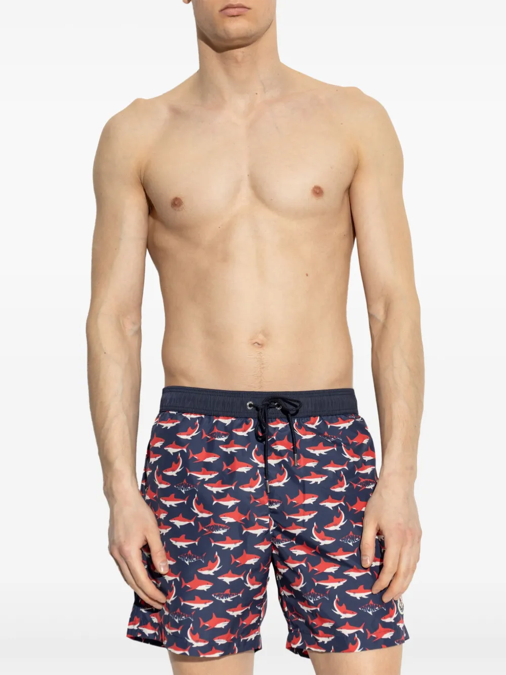 marineblauw elastische tailleband met trekkoord klepzak aan de achterkant logopatch aan de zijkant Zwemkleding moet over je eigen kleding worden aangepast.