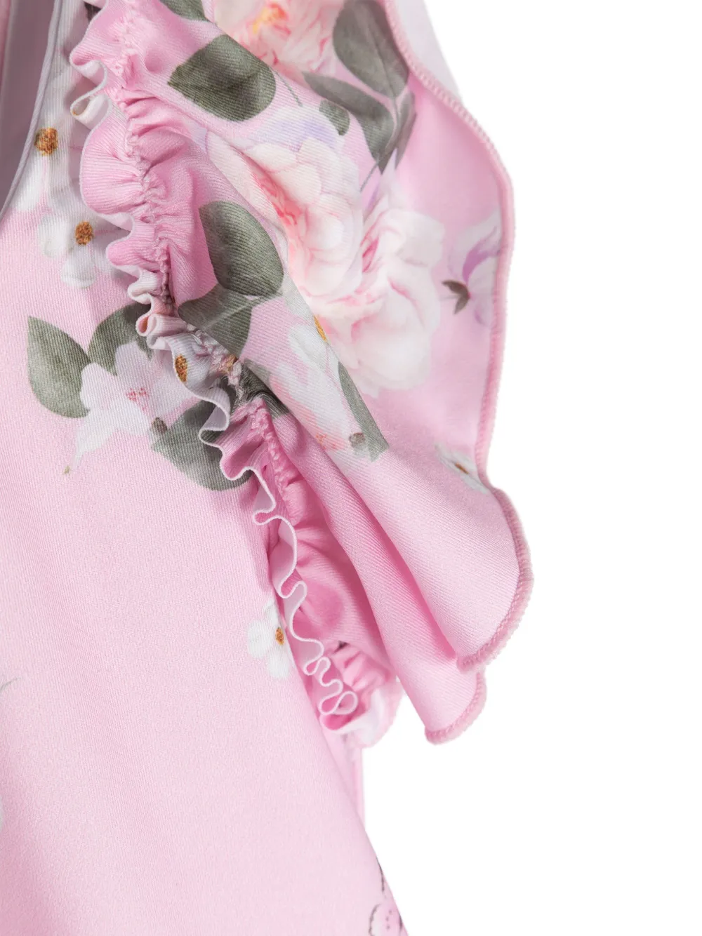 lichtroze/veelkleurig stretch design bloemenprint U-hals korte mouwen met ruches logoplakkaat lage rug ruches verstelbaar bandje aan de achterkant logolabel aan de binnenkant volledige voering slip-on stijl Zwemkleding moet over je eigen kleding worden aangepast.