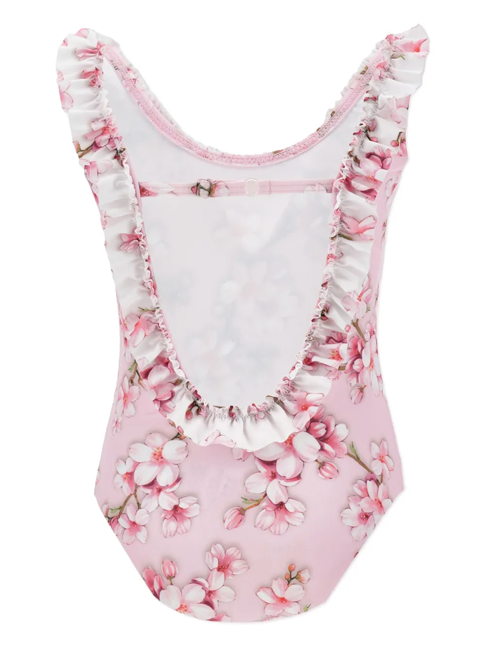 lichtroze sluiting aan de achterkant verstelbaar bandje aan de achterkant ruches Zwemkleding moet over je eigen kleding worden aangepast.
