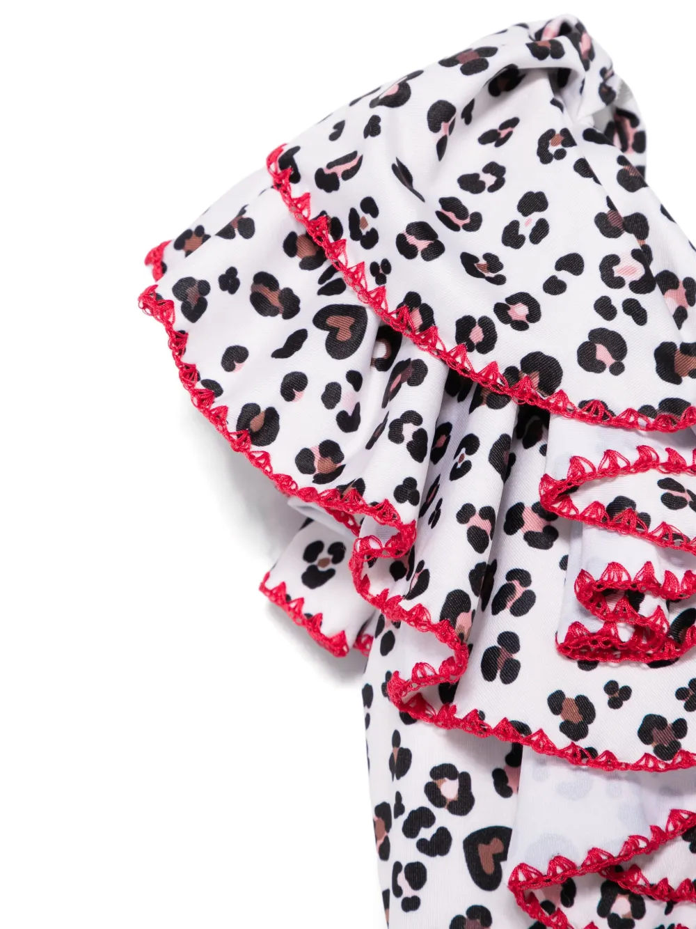 wit/veelkleurig stretch design technische jersey all-over luipaardprint instapmodel V-hals mouwloos ruches details logo bedel V-rug volledige voering badpak design Zwemkleding moet over je eigen kleding worden aangepast. Dit item wordt verkocht met een beschermhoes.