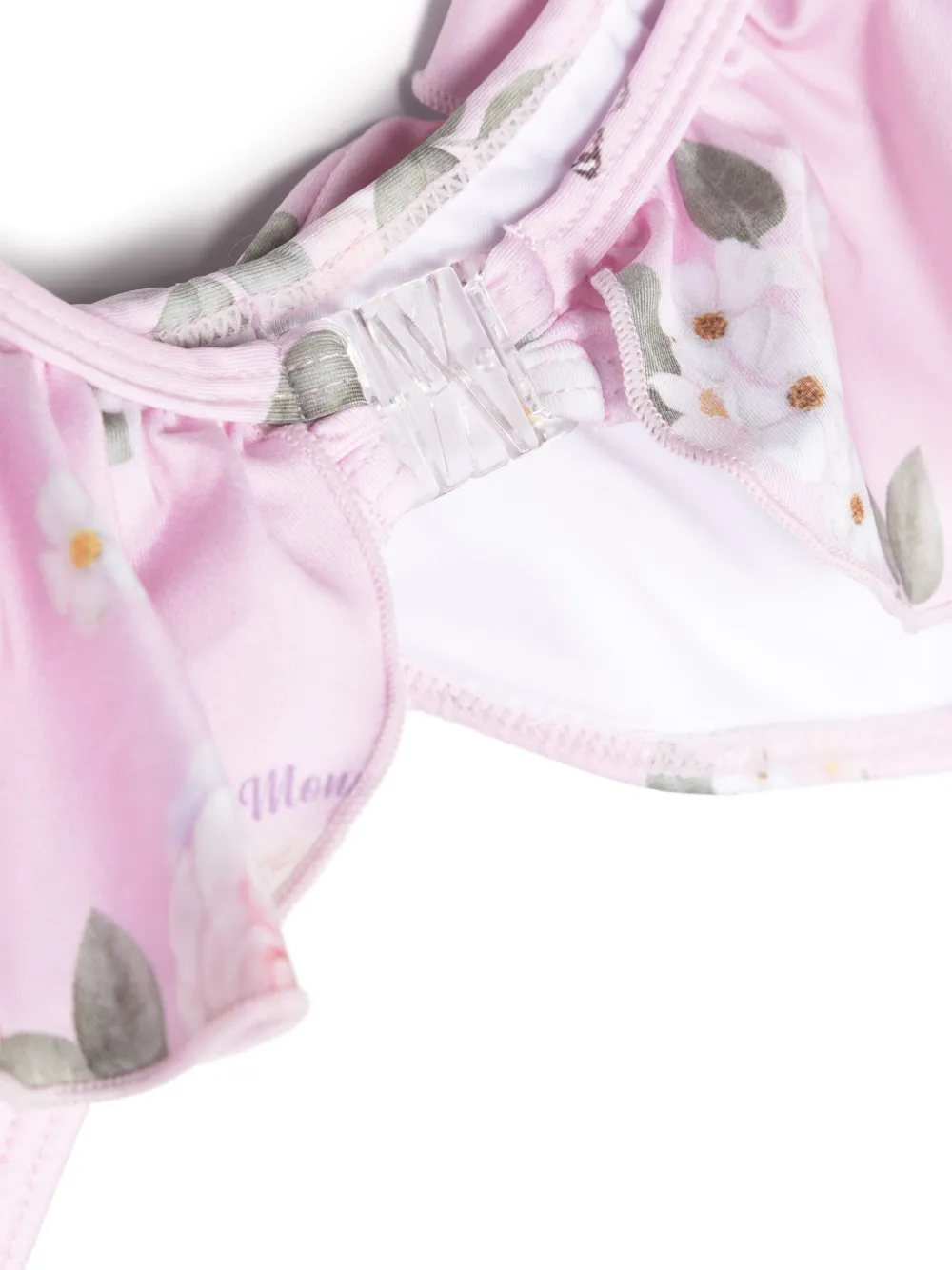 roze stretch design bloemenprint ruche details volledige voering Top: strikdetail ronde hals sluiting aan de achterkant mouwloos elastische band Broek: klassieke bikinislip Zwemkleding moet over je eigen kleding worden aangepast.