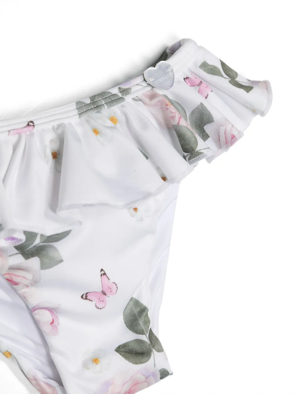 Monnalisa Bikini met bloemenprint en ruches – Wit