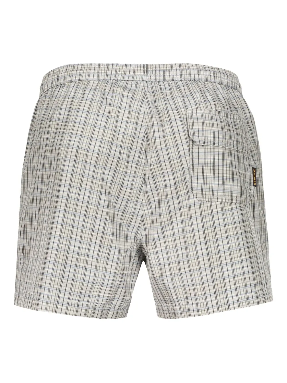 lichtgrijs elastische tailleband met trekkoord klepzak aan de achterkant korte zijsplitten Zwemkleding moet over je eigen kleding worden aangepast.
