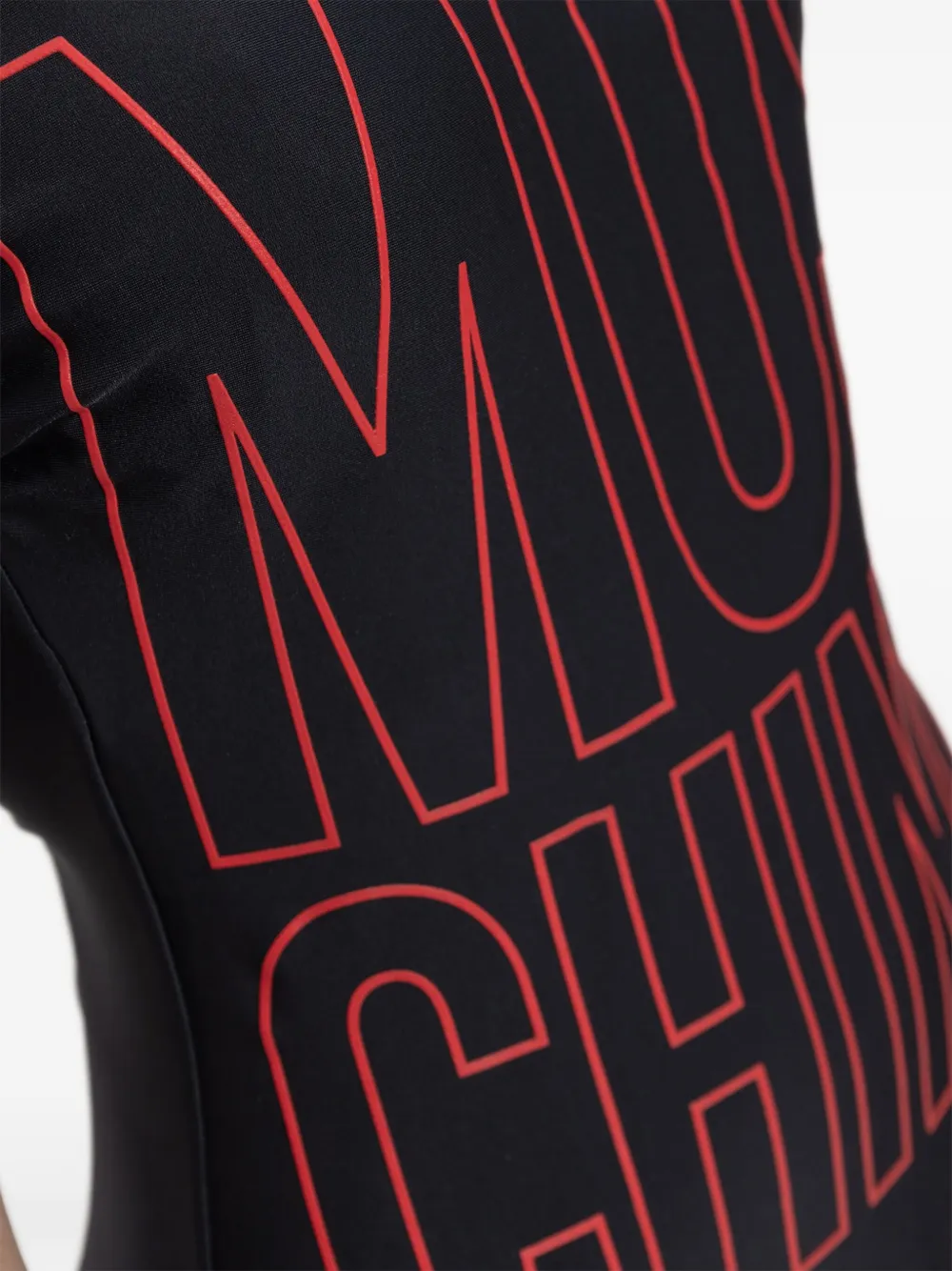 zwart rode logoprint dunne bandjes lage rug ronde hals nauwsluitend Zwemkleding moet over je eigen kleding worden aangepast.