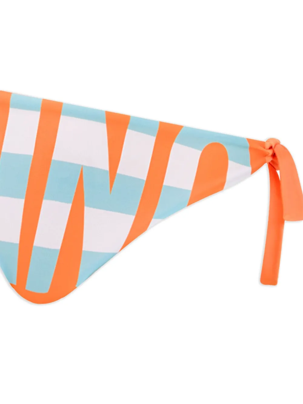 oranje stretch design logoprint op de voorkant striksluiting aan de zijkant Zwemkleding moet over je eigen kleding worden aangepast.