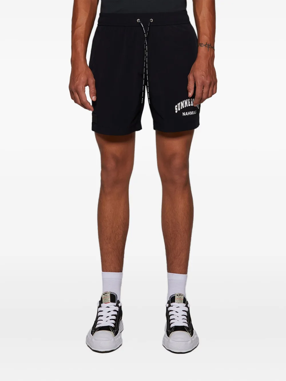 zwart elastische tailleband met trekkoord twee ingenaaide zijzakken klepzak aan de achterkant Zwemkleding moet over je eigen kleding worden aangepast.