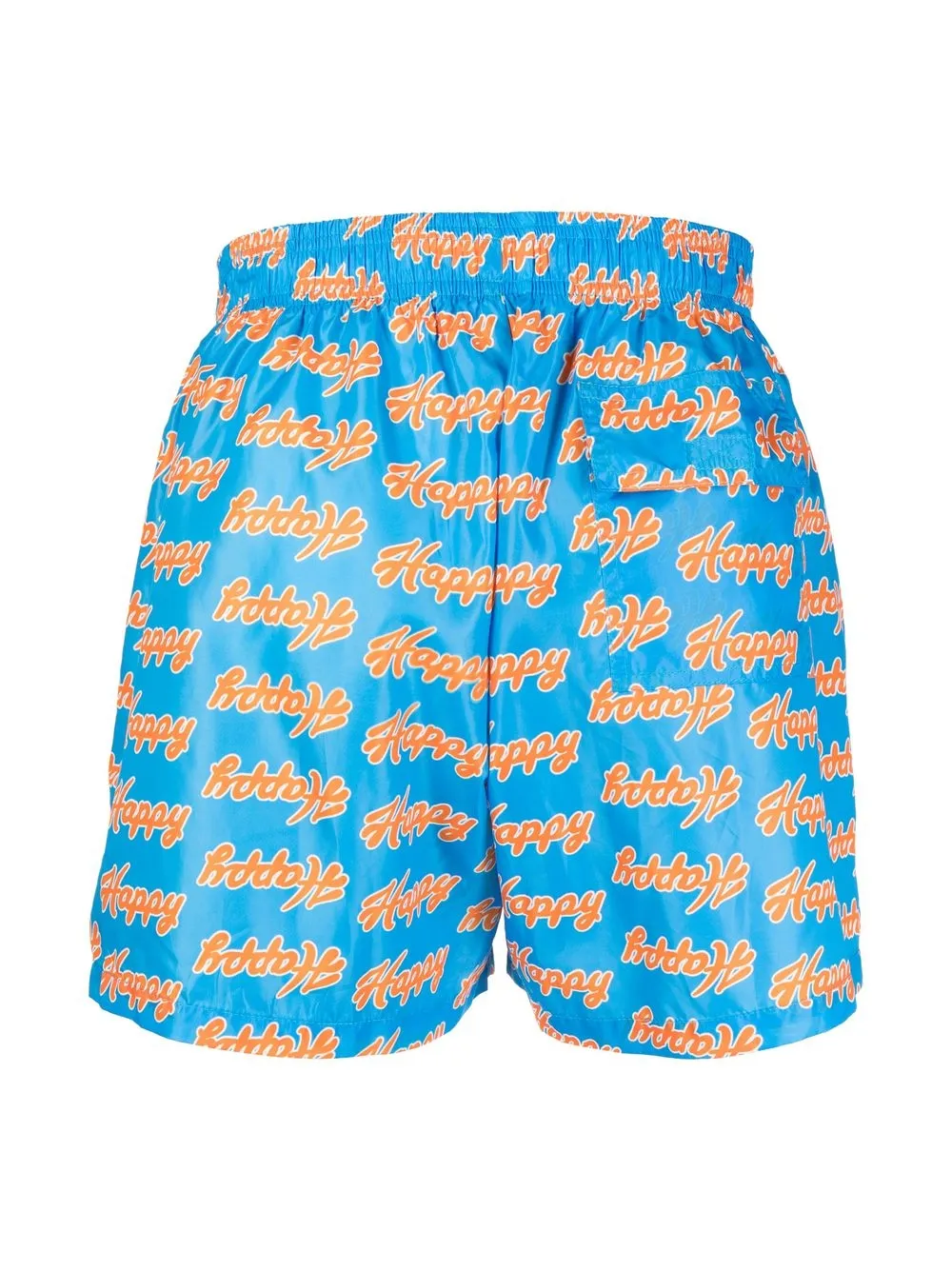 Blauw, sinaasappel, slogan print, elastische tailleband, mid waist en opgestikte achterzak. Zwemkleding moet over je eigen kleding worden aangepast.. Als u dit unisex item wilt kopen, wees ervan bewust dat het matensysteem voor heren wordt gebruikt.