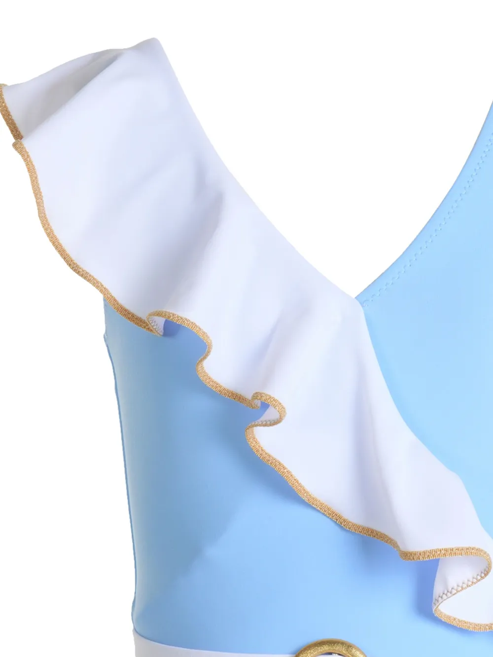 korenbloemblauw ringdetail rechte open rug Zwemkleding moet over je eigen kleding worden aangepast.