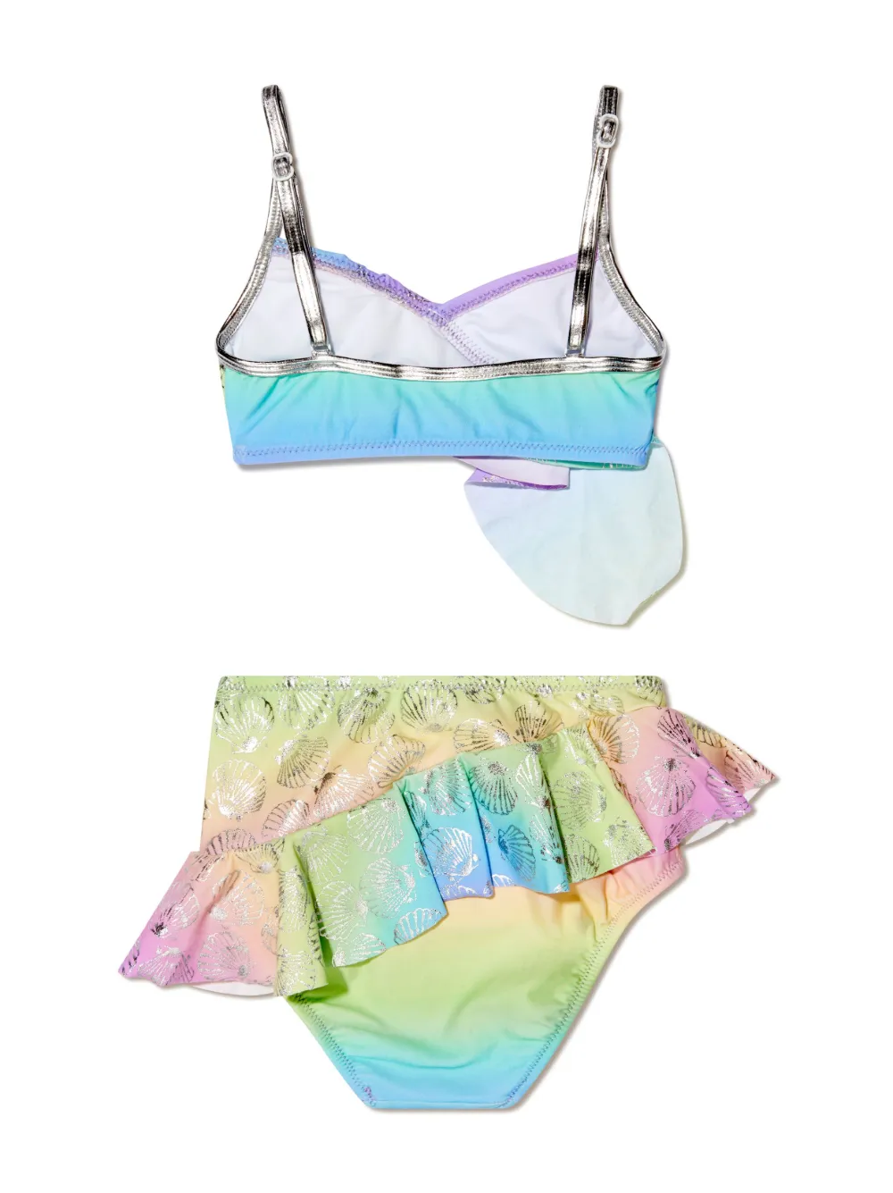 Veelkleurig, stretch design, asymmetrisch design, all-over grafische print, ruche details, verstelbare spaghettibandjes, bandeau, high-waist, elastische tailleband en klassieke bikinislip. Zwemkleding moet over je eigen kleding worden aangepast..