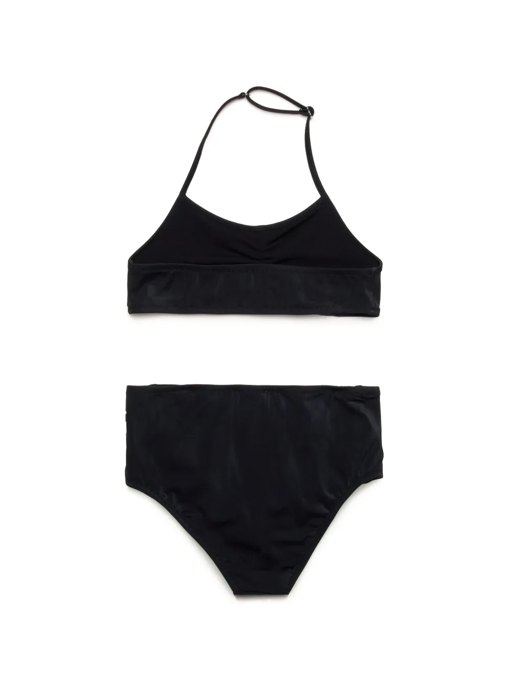zwart halternek striksluiting verstelbaar halskoord high waist Zwemkleding moet over je eigen kleding worden aangepast.