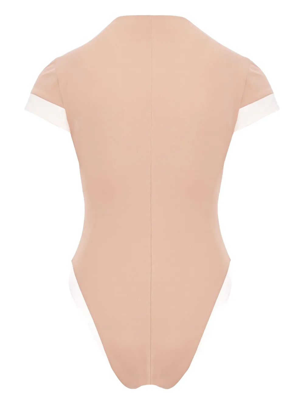 blush beige halve rits aan de voorkant opstaande kraag kapmouwen Zwemkleding moet over je eigen kleding worden aangepast.