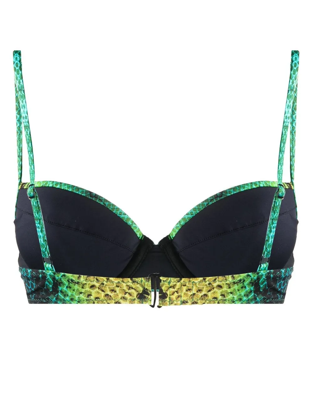 Groen, lichtgeel, all-over slangenprint, verstelbare spaghettibandjes, sweetheart-hals, beugelbeha, sluiting aan de achterkant en volledige voering. Zwemkleding moet over je eigen kleding worden aangepast..