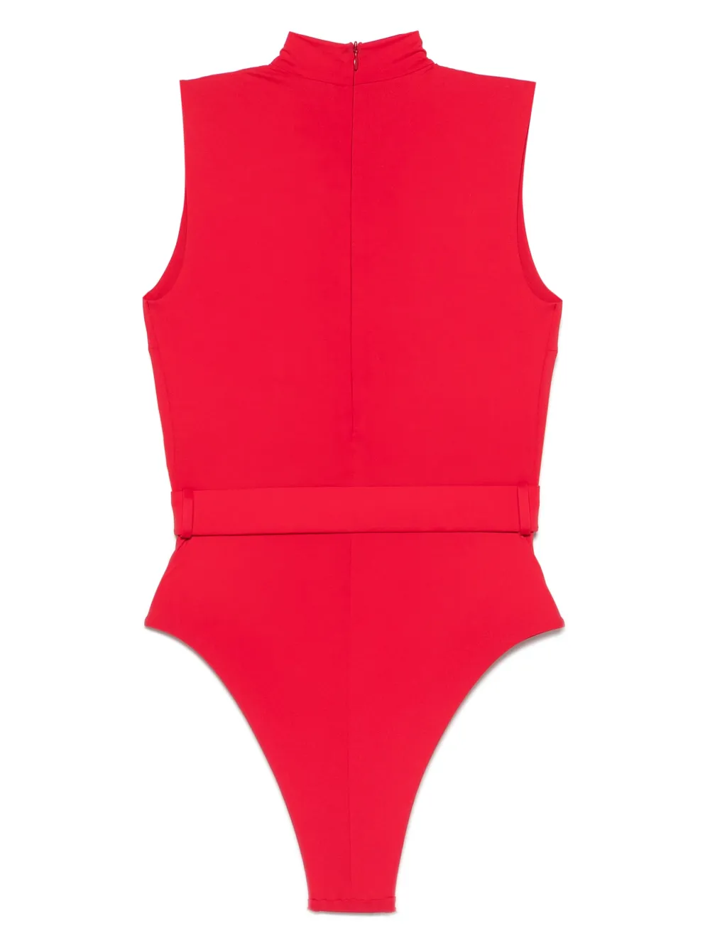 helderrood verborgen ritssluiting op de rug afneembare riem uitgesneden detail Zwemkleding moet over je eigen kleding worden aangepast.