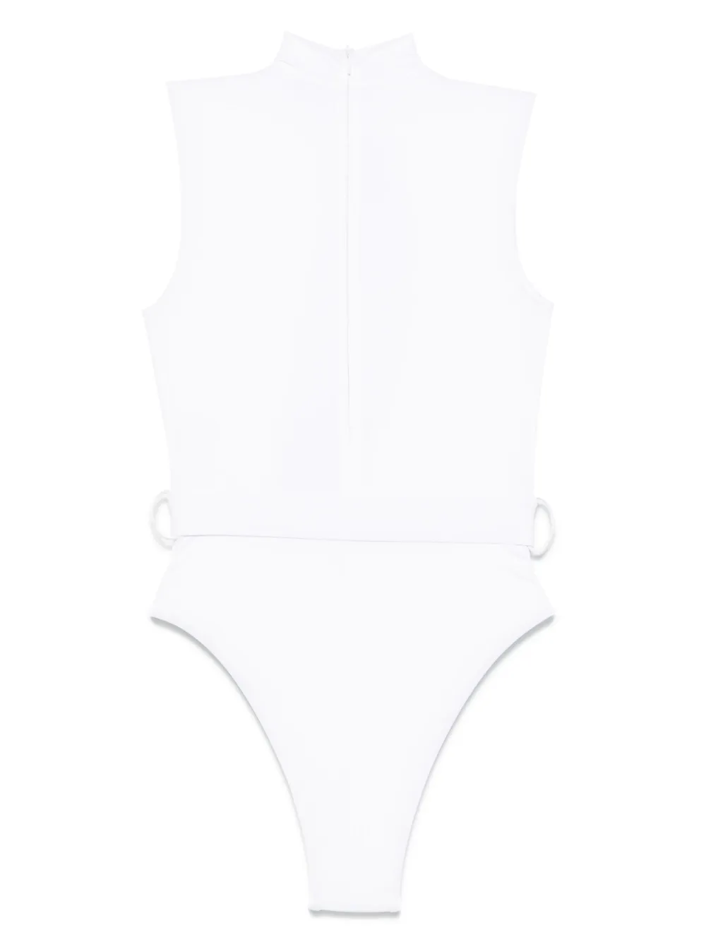 wit verborgen ritssluiting op de rug afneembare riem uitgesneden detail Zwemkleding moet over je eigen kleding worden aangepast.