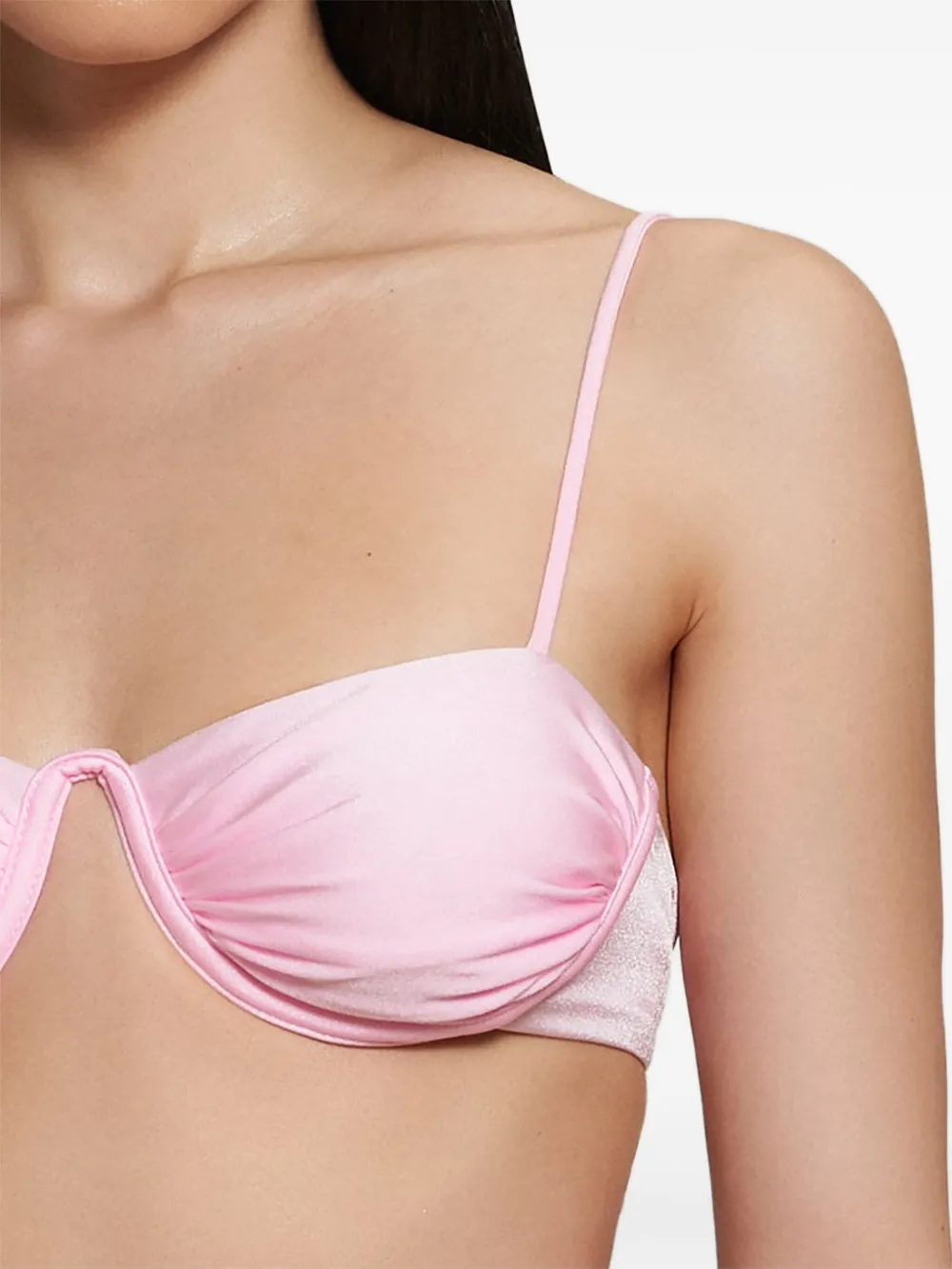lichtroze stretch designTop: beugelbh verstelbare spaghettibandjes sluiting aan de achterkantBroek bedel detail bikinibroek met striksluiting aan de zijkant Zwemkleding moet over je eigen kleding worden aangepast.
