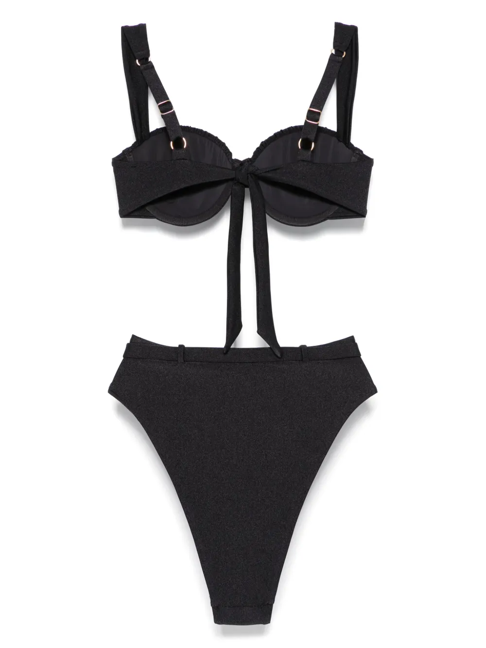 zwart striksluiting aan de achterkant bustier-stijl hals high waist bikinibroek Zwemkleding moet over je eigen kleding worden aangepast.