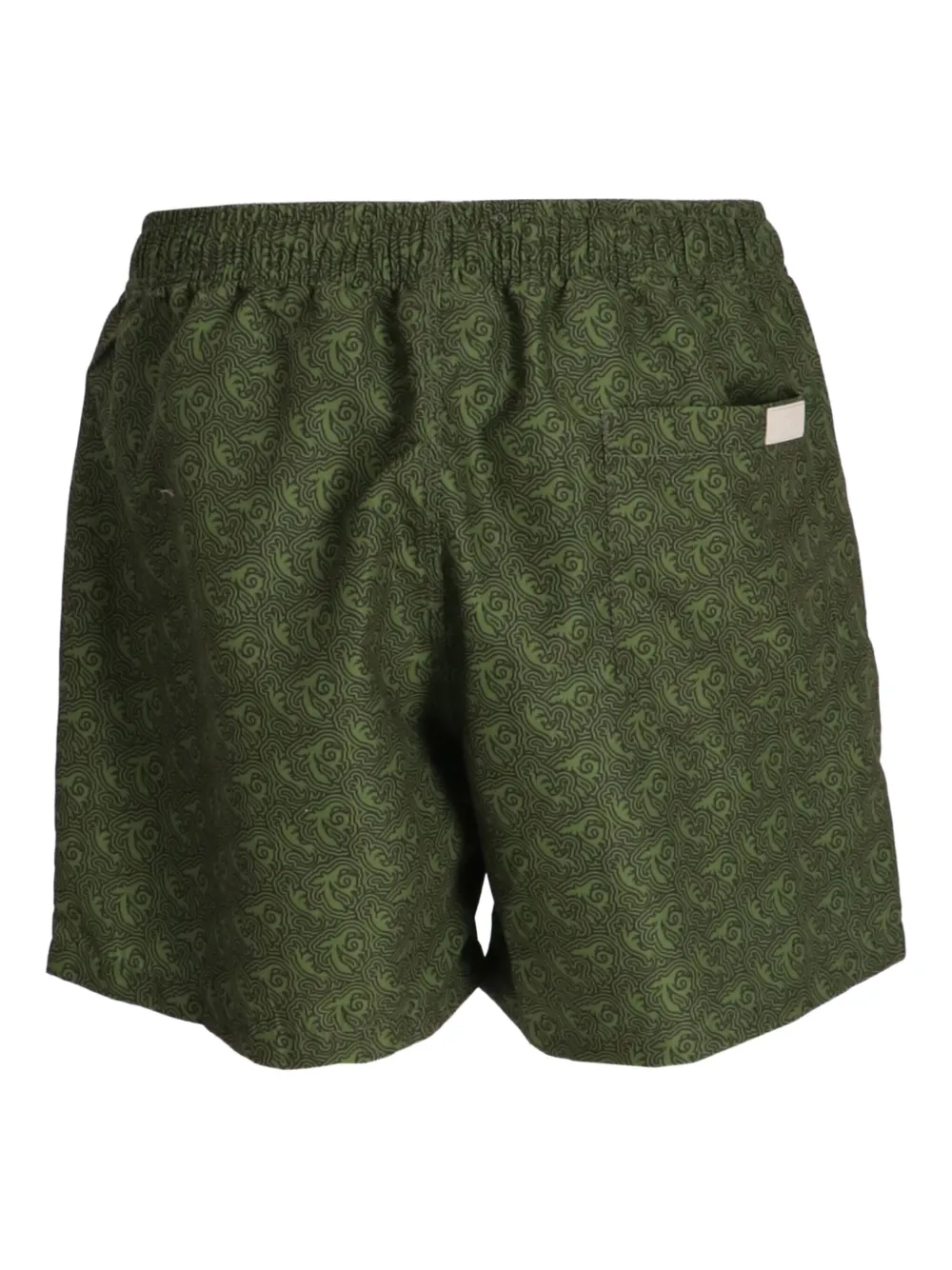 donkergroen elastische tailleband met trekkoord steekzak met ritssluiting aan de zijkant opgestikte zak aan de achterkant Zwemkleding moet over je eigen kleding worden aangepast.