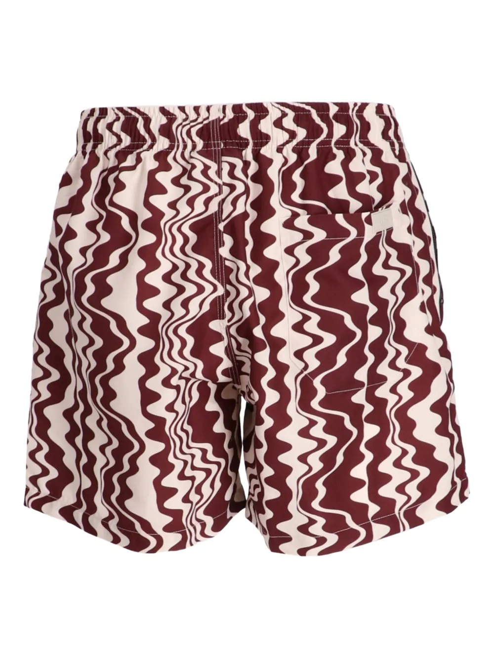 robijnrood elastische tailleband met trekkoord steekzak met ritssluiting aan de zijkant opgestikte zak aan de achterkant Zwemkleding moet over je eigen kleding worden aangepast.