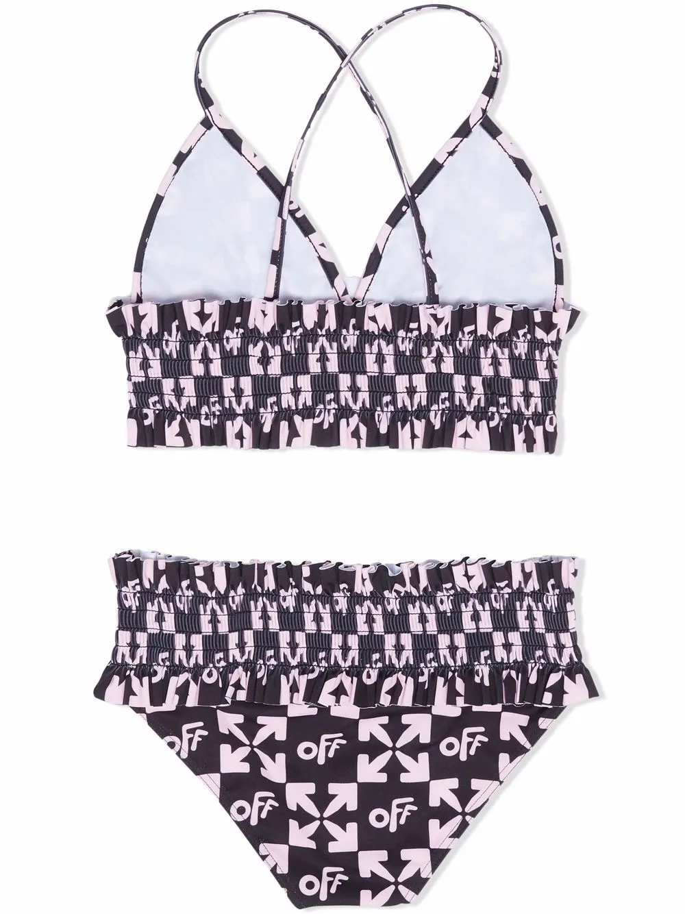 Zwart, roze, monogram patroon en gerimpeld effect. Zwemkleding moet over je eigen kleding worden aangepast..