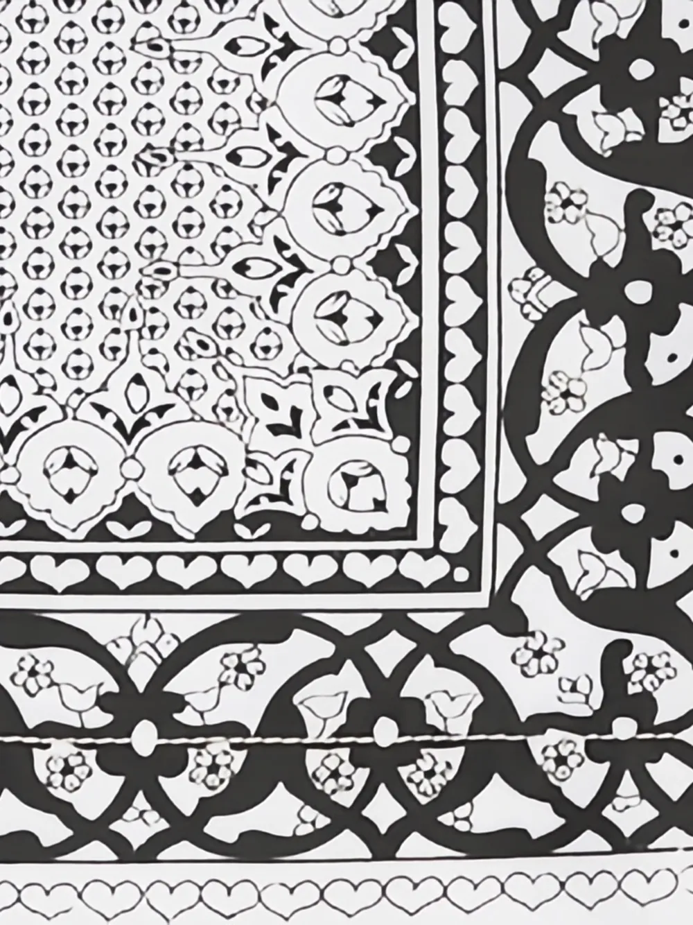 wit zwarte rand met patroon geometrische print herhalend patroon gouden gespsluiting verstelbare bandjes aan de zijkant ^ Zwemkleding moet over je eigen kleding worden aangepast.