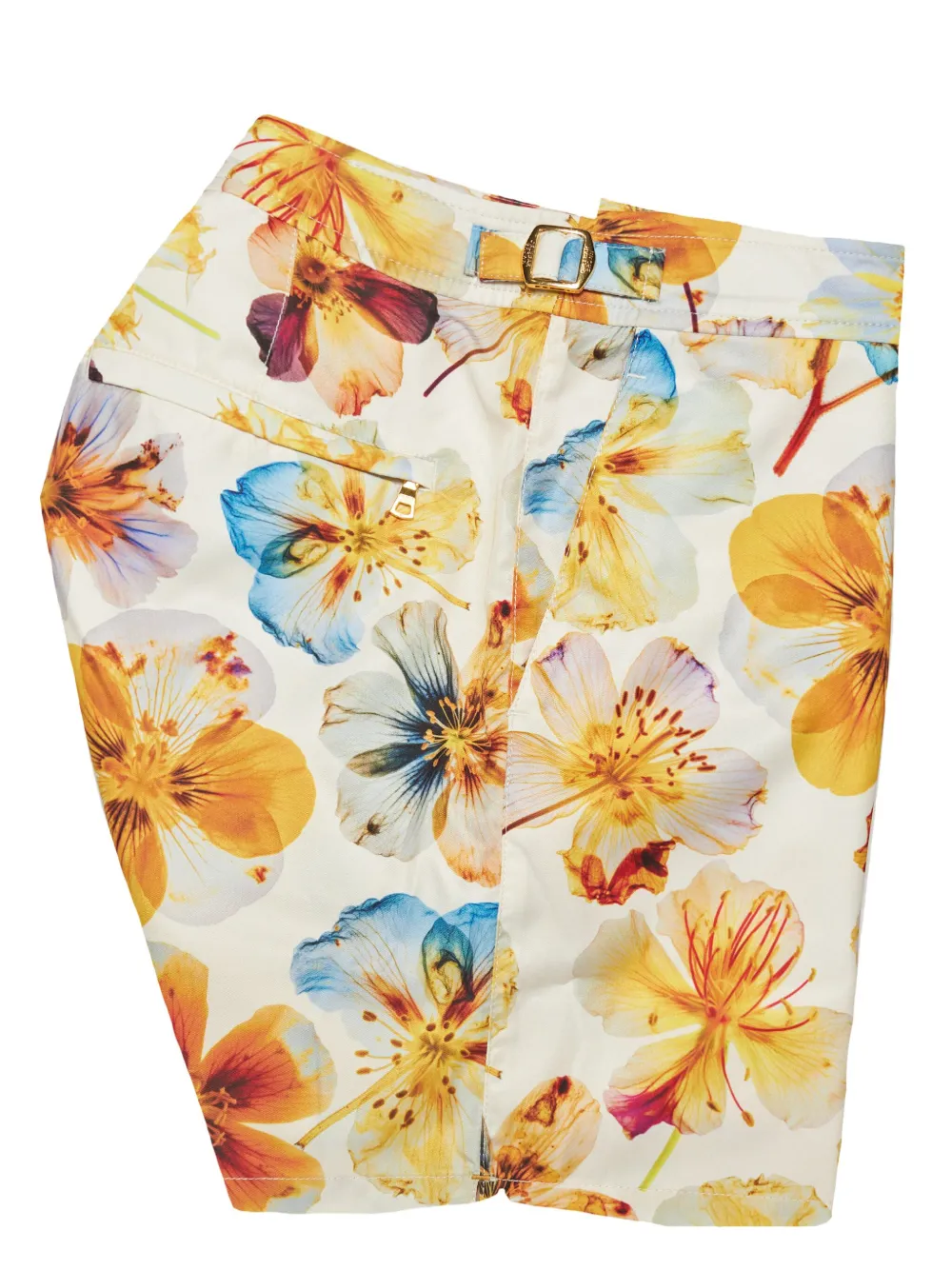 wit/veelkleurig gerecycled polyester all-over bloemenprint drukknoopsluiting en rits aan de voorkant gespsluiting aan zijkant twee steekzakken aan de zijkant achterzak met ritssluiting Zwemkleding moet over je eigen kleding worden aangepast.