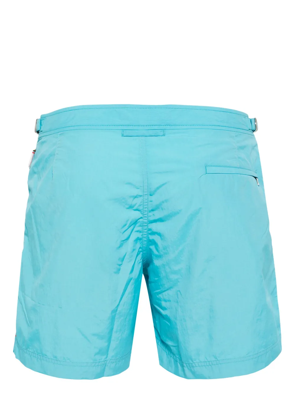 aqua blauw verstelbare bandjes drukknoopsluiting en rits aan de voorkant twee ingenaaide zijzakken achterzak met ritssluiting korte zijsplitten rechte zoom dijlengte mesh voering Zwemkleding moet over je eigen kleding worden aangepast.